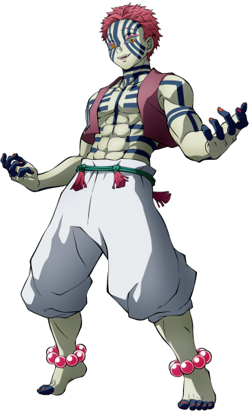 Akaza is a fictional anime character who comes from the anime, Demon Slayer. He is one of the upper moons meaning he is an antagonist.